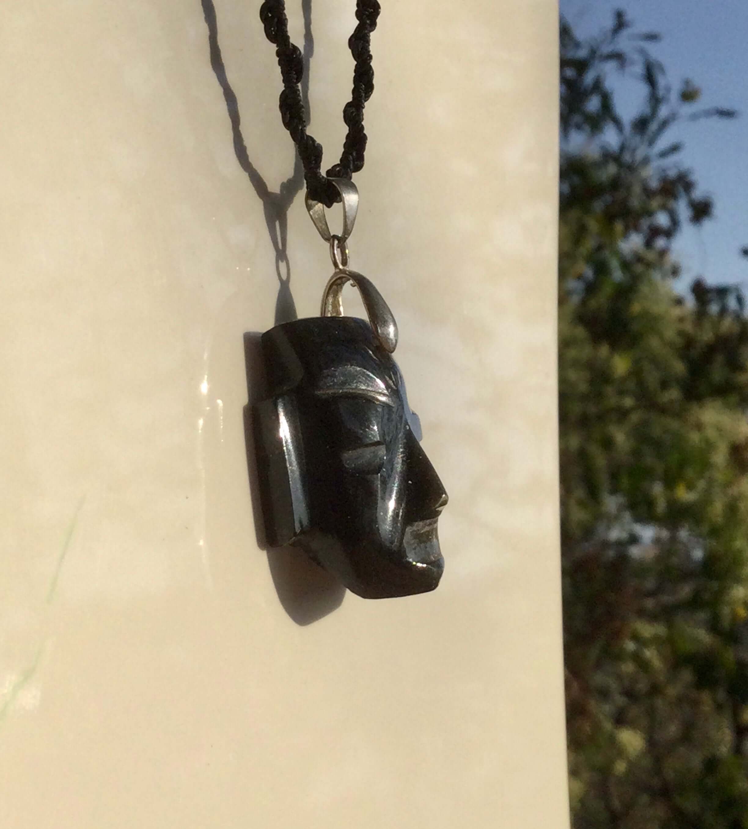 Aztec Calendar Obsidian Pendant - Handcrafted Mexican Jewelry in Black crystal volcanic Stone