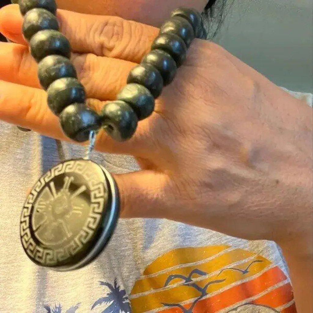 Hunab ku Obsidian Anhänger Maya Jade Perlen Halskette Guatemaltekind mexikanischer Maya -Schmuck