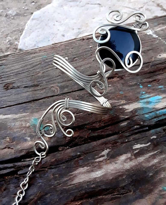 Bracelet et bague en fil d'obsidienne mexicaine et d'alpaga - Bijoux fins artisanaux