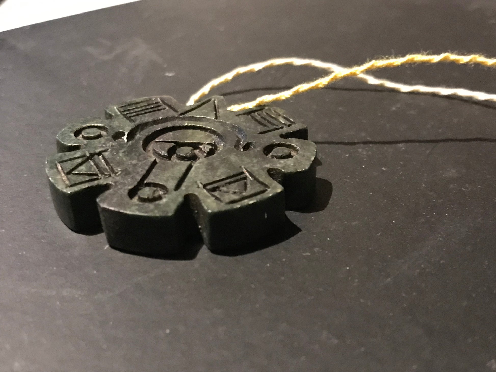 Ollin Pendant, Aztec calendar symbol, Guatemalan jade style, serpentine stone, Mexican precolombian Jewelry (Copia)